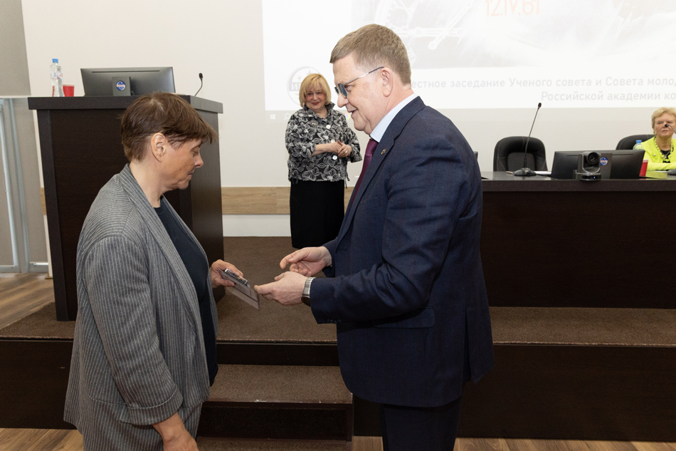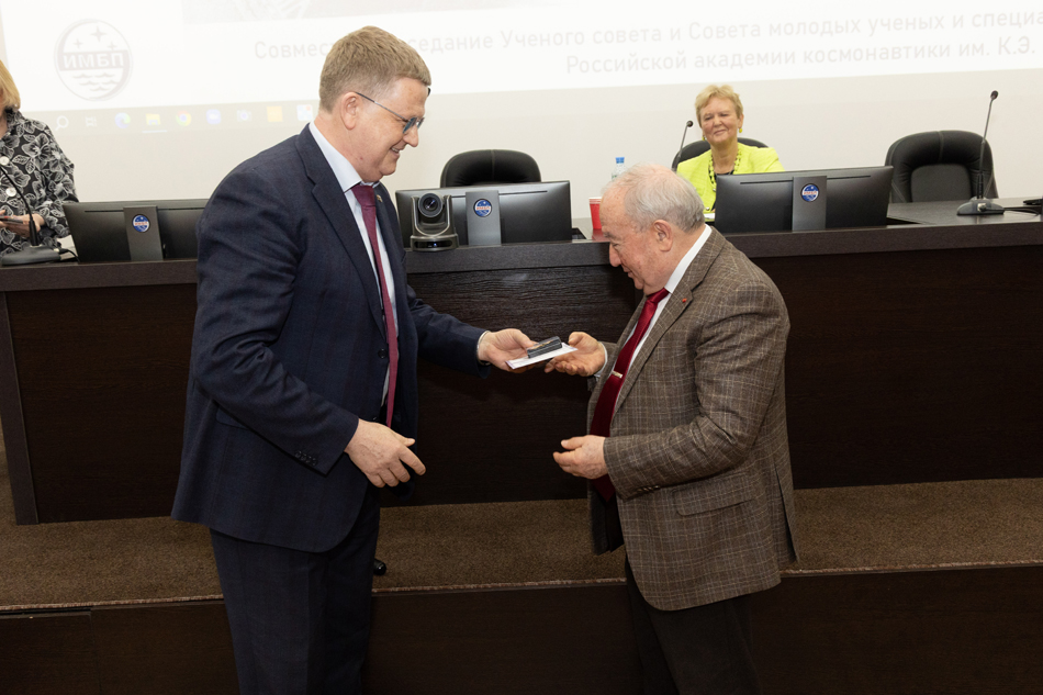 Ученого совета ИМБП РАН, Совета молодых ученых и специалистов Российской академии наук и Российской академии космонавтики им. К.Э. Циолковского. На заседании выступил Соловьев В.А.,